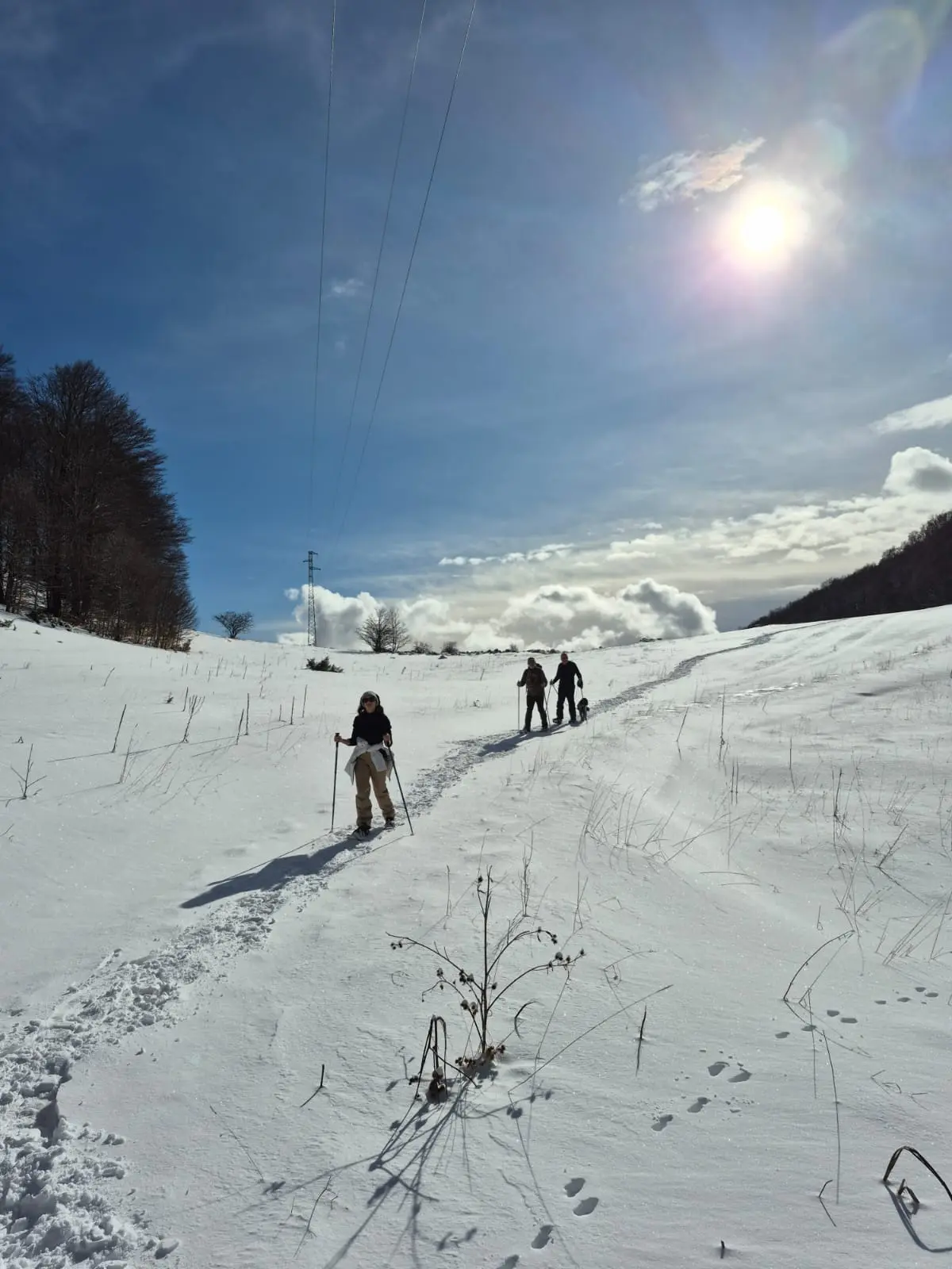 Partenza da Fonte di Nunzio nel territorio di Pacentro, con il percorso iniziale nel Bosco di Valle Cupa e Cesone, arrivo a Fonte dell'Orso (prima sosta)