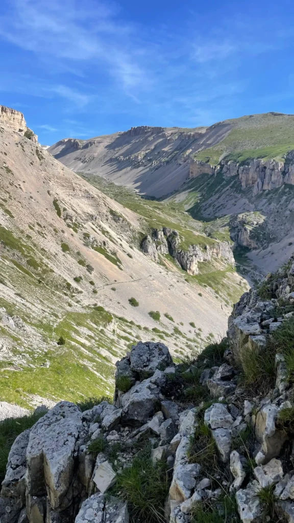 Un’altra possibilità parte dalla cosiddetta strada delle “Tagliate”, situata sopra il comune di Taranta Peligna (CH), dove si imbocca il sentiero H6. Questo percorso porta gradualmente al Rifugio Macchia di Taranta, un luogo perfetto per una sosta e per ammirare il panorama circostante. Dopo il rifugio, il sentiero H6 continua per un breve tratto che permette di scendere all’interno della valle, offrendo una prospettiva dall’alto sul suo anfiteatro naturale. Questo itinerario è particolarmente suggestivo per chi ama combinare tratti panoramici a sentieri immersi nella natura selvaggia, ma richiede attenzione e preparazione, soprattutto nei punti più esposti.